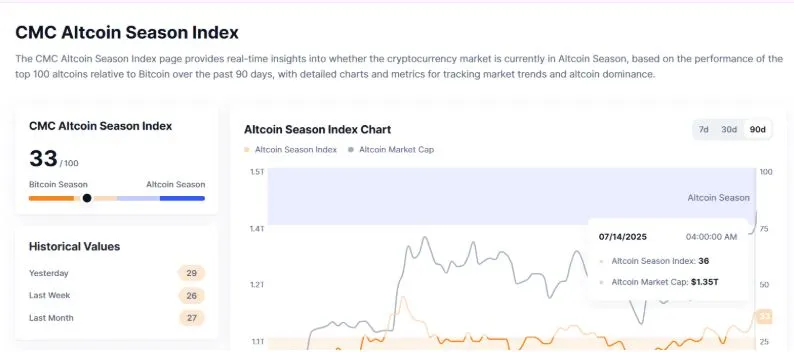 As per the CMC chart, there is a slight movement on the season chart. Altcoin season is not here yet, but the movement on the chart definitely signals one.