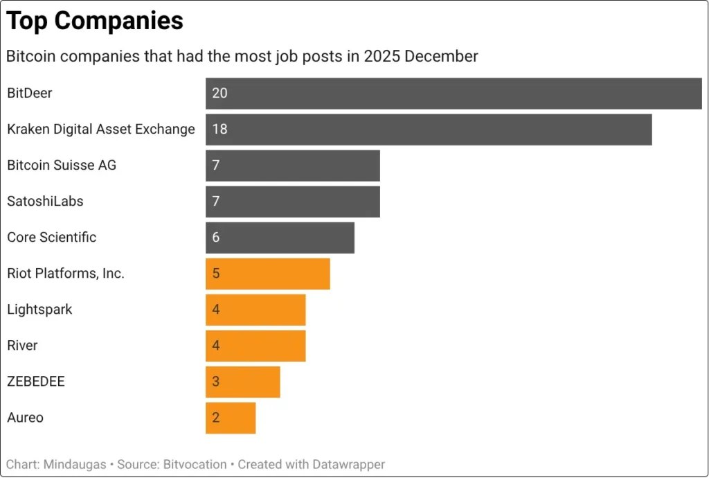 Bitcoin-only companies grew their slice to 47% of the broader crypto job market, up 5% from 2024. These Bitcoin firms offered 56% of all remote positions, though remote work overall dropped 10% as companies brought workers back to offices.