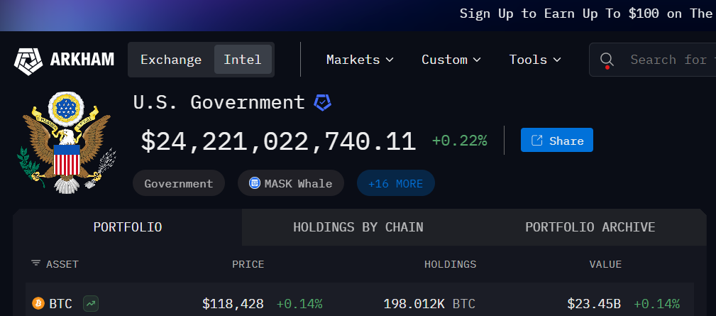 Arkham Data on US Bitcoin Holdings