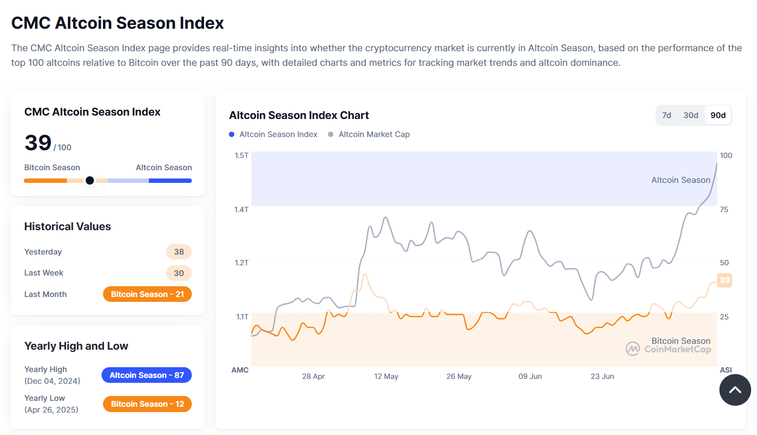 Currently standing at 39, the altcoin season is on the anvil.