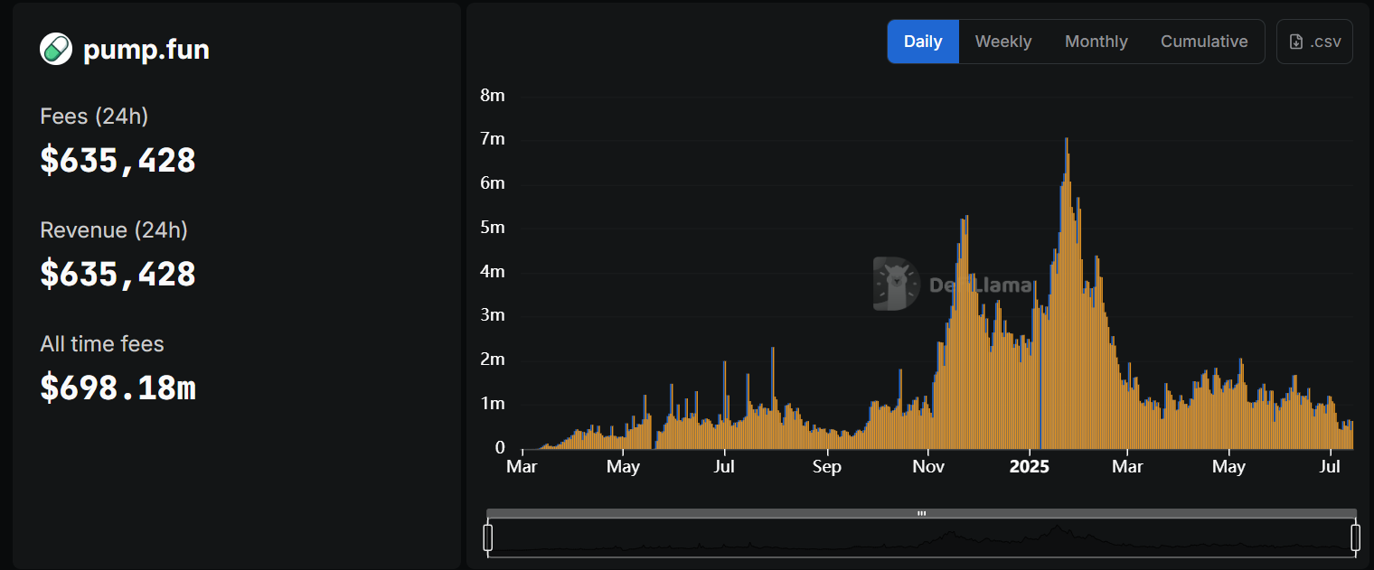 Pump.fun has generated $64.47 million in fees in June 2025 and $39.08 million in revenue. The launchpad generated $250 million in revenue by November 2024 and reached $100 million in cumulative revenue since its launch in January 2024. Its peak daily revenue earlier in the year surpassed $7.07 million for both revenue and protocol fees.