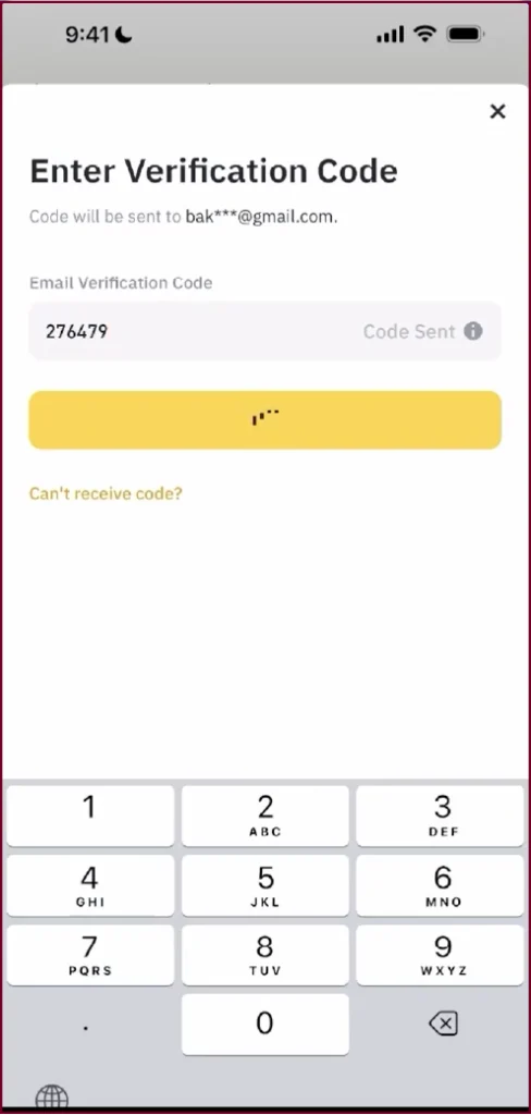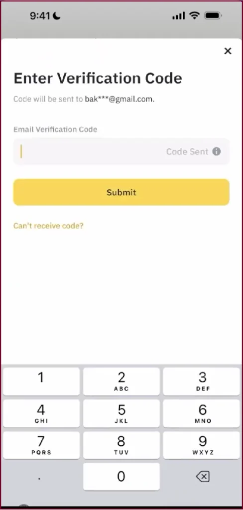 A verification code will be emailed to you by Binance after that. Check your email for the code and enter it into the verification screen. Press Submit to proceed.