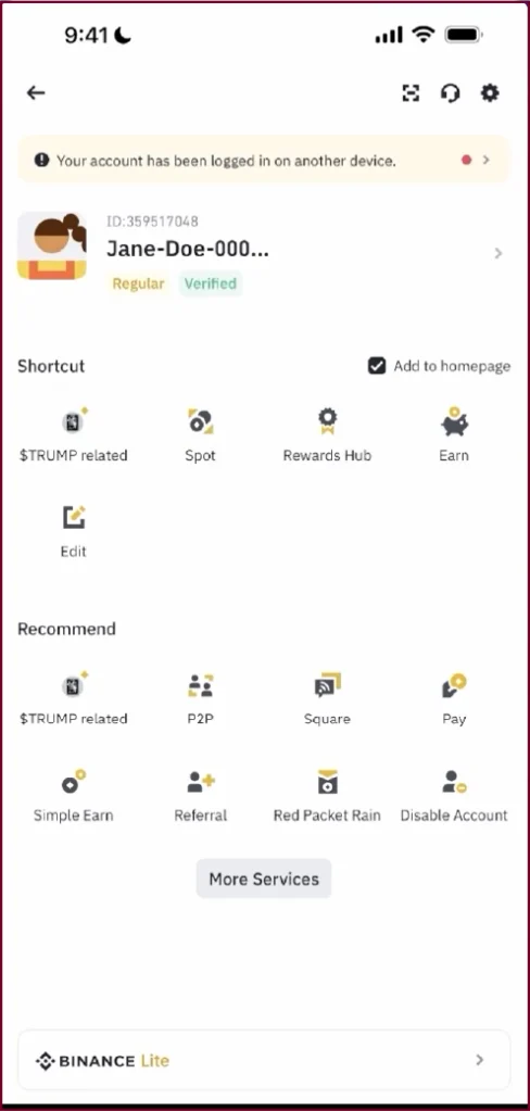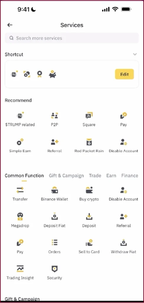 More Services screen, locate and tap ‘Binance Wallet’ to enter the Web3 wallet section