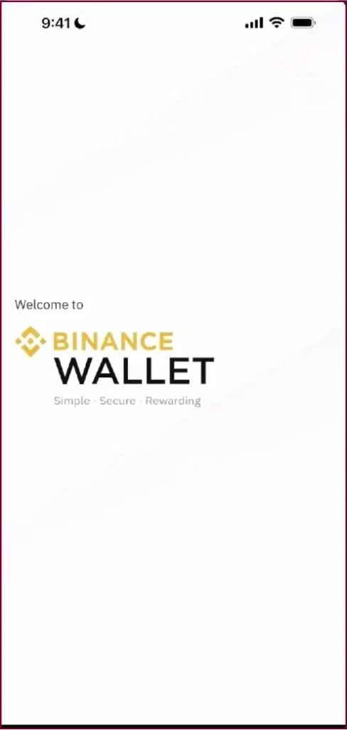 The Binance Wallet welcome screen, ‘Simple · Secure · Rewarding’
