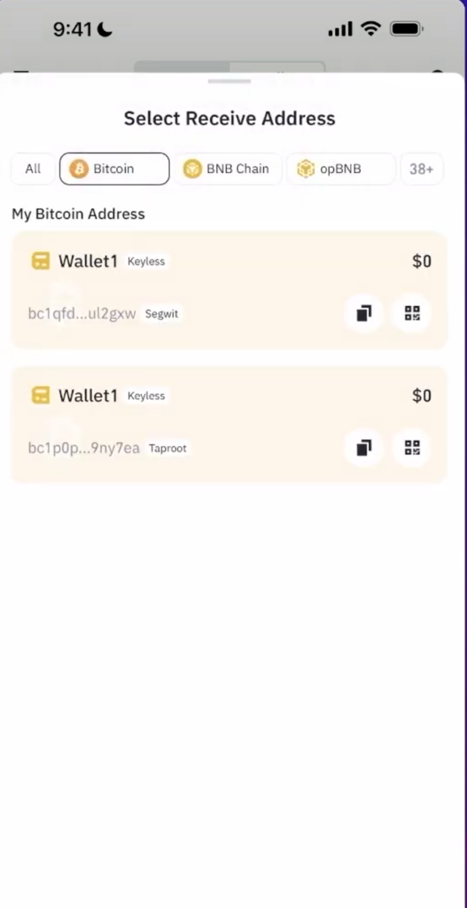 For each blockchain, copy this wallet address or present its QR code so that the sender can scan it